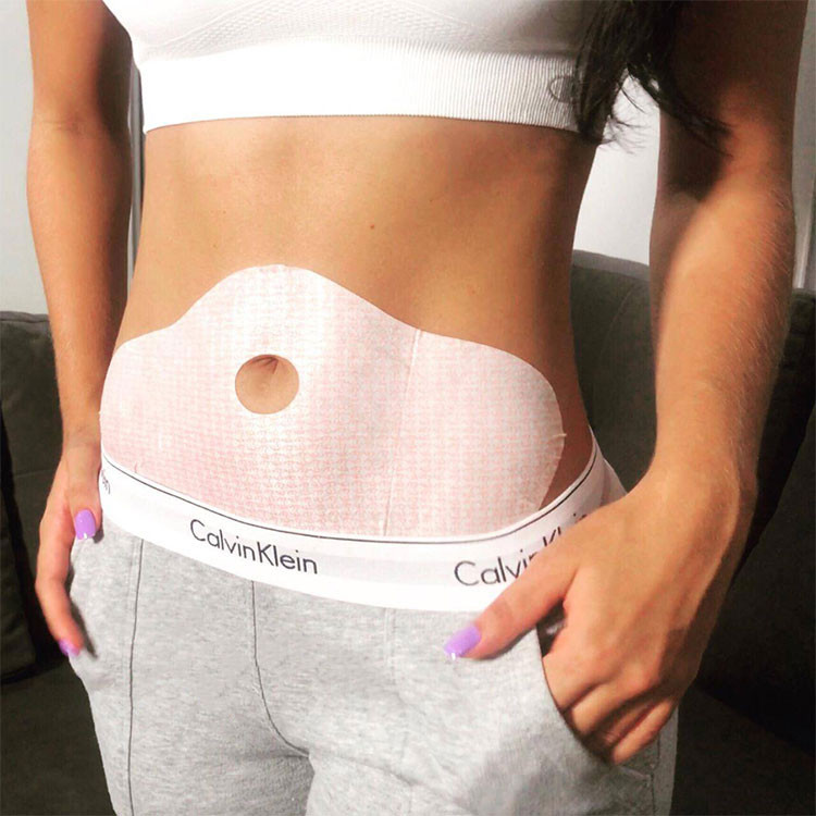 - Limpiar el estómago o después de un baño, asegúrese de que su piel este seca porque el parche en humedad no se pega.