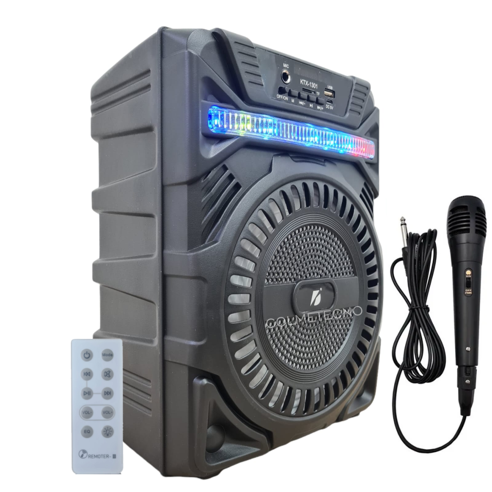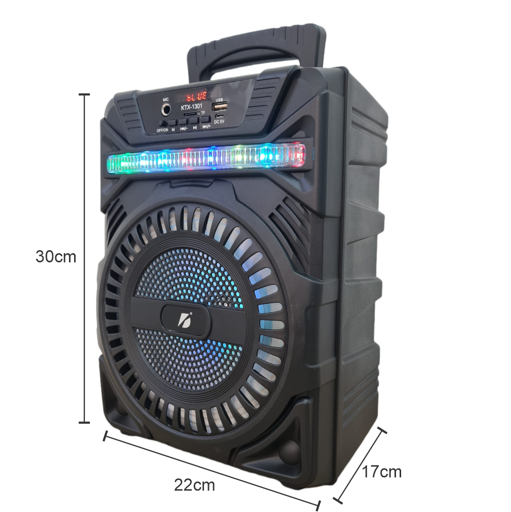 Ésta excelente bocina, no requiere estar conectada todo el tiempo, su batería recargable le permite operar durante 3 horas aproximadamente, sin ningún tipo de conexión a la corriente eléctrica. Sus luces led integradas le darán un excelente ambiente a su fiesta o reunión. Con entradas para memorias USB y SD para reproducir música en formato mp3 y WAV, además de tener conexión bluetooth con un alcance de 10 metros.