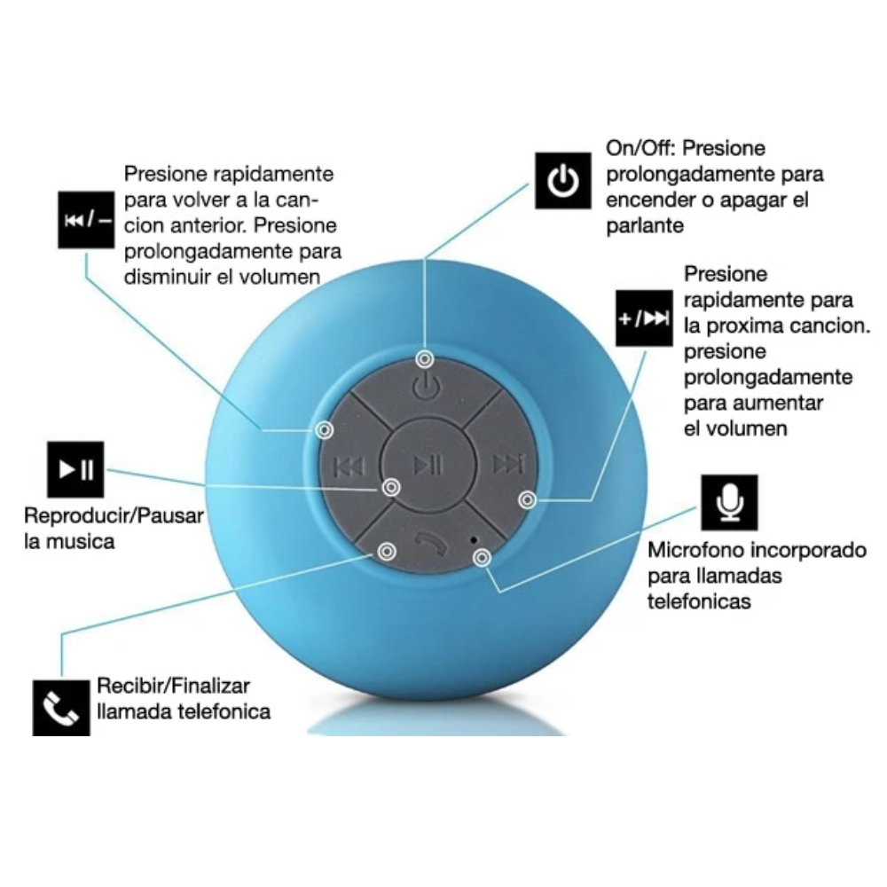 PARLANTE IMPERMEABLE ALTAVOZ RECARGABLE DUCHA BLUETOOTH RESISTE AGUA