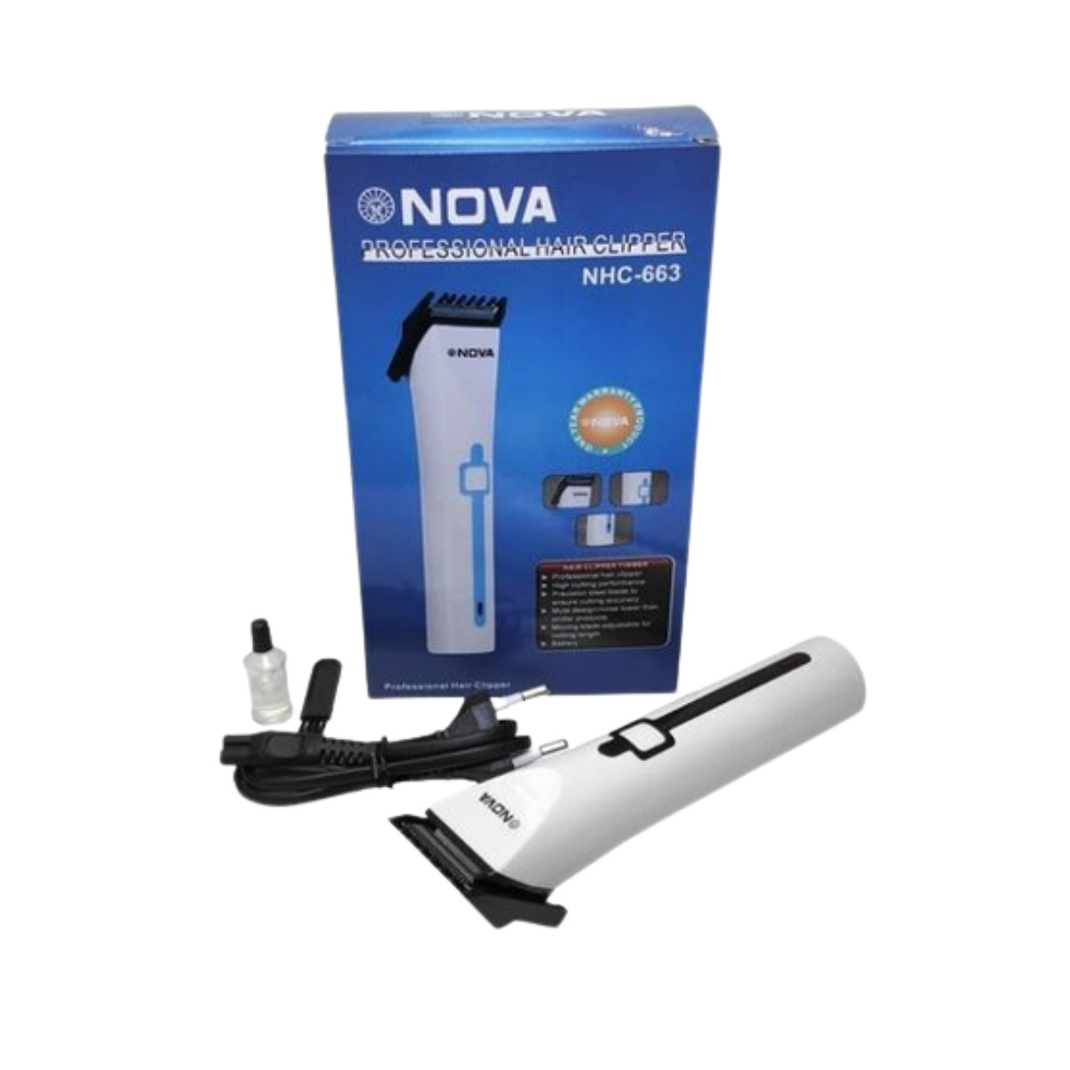 Patillera Cortadora de Pelo Inalámbrica NOVA NHC-663 perfecta para usar en casa, con 1 guías de corte baja para hacer cortes y rasuradas sin igual. Es recargable y muy elegante. Con la guía que incluye puede tener un corte muy detallado y elegante. Sirve también para perfilar el cabello. Es ideal para piel sensible, protege la piel de raspaduras y cortes no deseados.