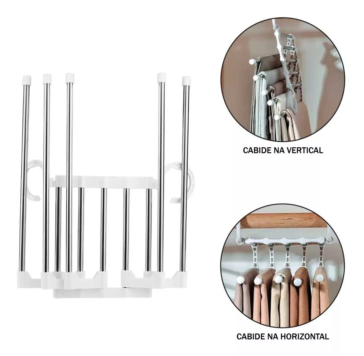 Presentamos nuestro colgador plegable multifuncional de acero inoxidable como una solución perfecta para quienes desean mantener sus pantalones organizados y bien mantenidos. Con 5 separadores, te permite guardar varios pantalones en un solo colgador, ahorrando espacio en tu armario. Además, su diseño plegable hace que sea fácil de transportar cuando se viaja o se muda a un lugar de residencia, su definición puede ser versátil y funcional.