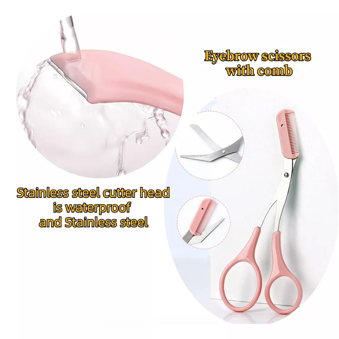 El paquete incluye: 1 tijeras de cejas con peine, 2 recortadoras de cejas. Tijeras de cejas perfectas para mujeres, kit de cejas. Pueden satisfacer tus diferentes preferencias, pequeñas tijeras de belleza.