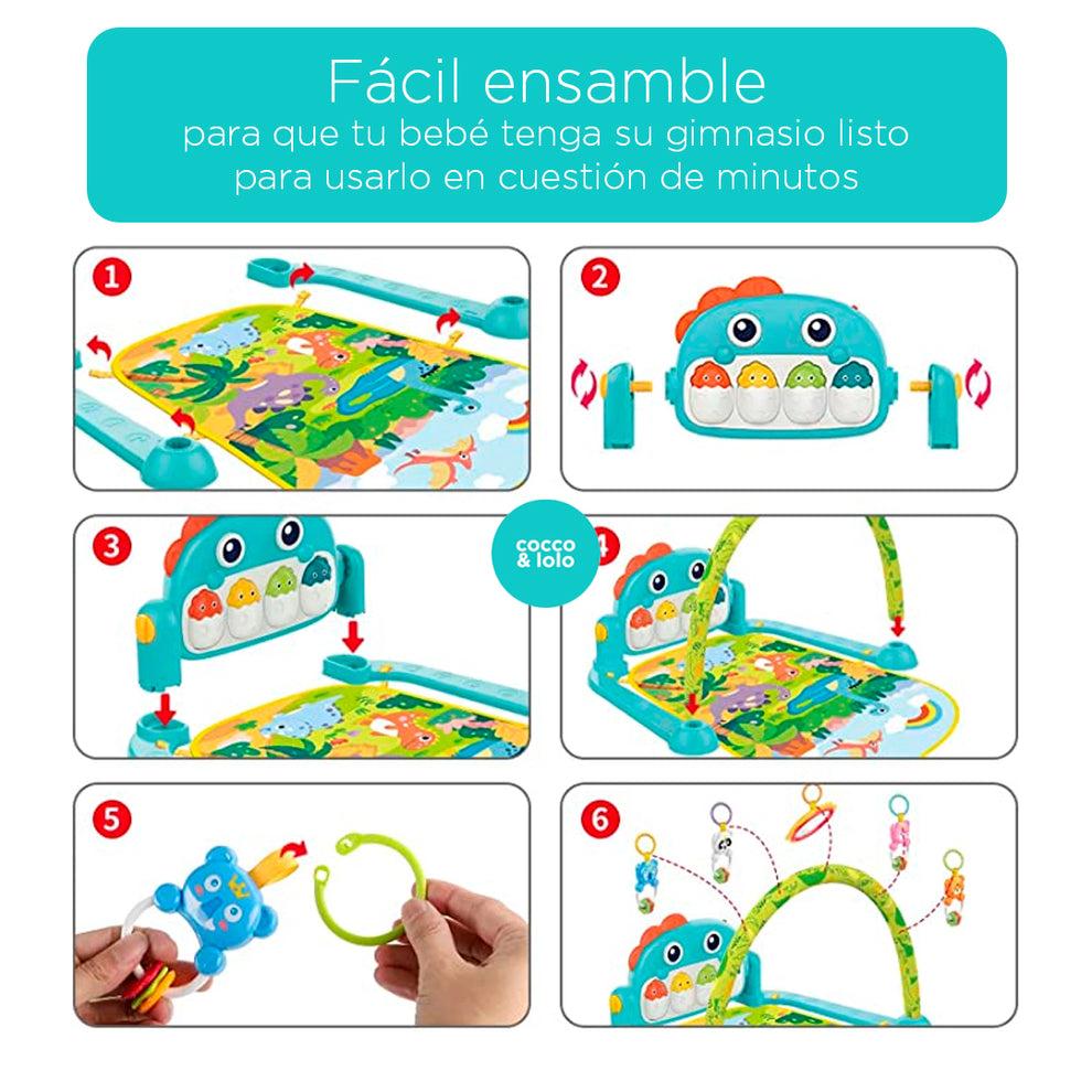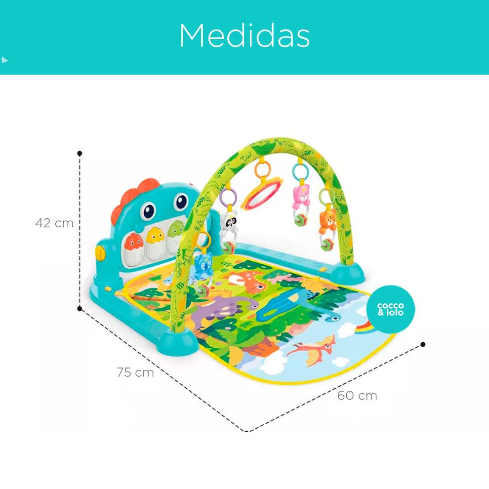 Gimnasio piano con forma de dinosaurio; divertidas formas y colores que ayudaran a la estimulación visual de tu bebé. Además con un piano que puede tocar con sus pies o manos.