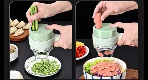 Descubre ahora el juego de cortadores de verduras eléctricos portátiles 4 en 1, procesador de alimentos inalámbrico tipo C recargable para que tengas más comodidad y facilidad a la hora de preparar tus recetas, sin suciedad ni trabajo. La máquina tiene doble propósito, función 4 en 1, molinillo de ajo y batidor de huevos, ajustable en 3 velocidades, se puede procesar de acuerdo con las necesidades de los diferentes ingredientes, es fácil de usar, puede ser carne molida, puré de ajo o huevos batidos. La taza apta para uso alimentario, de 250 ml, es como la taza, tiene una hoja de acero inoxidable, afilada y rápida. Bate con 2 varillas batidoras y un potente motor de alta velocidad. Las partes desmontables, fáciles de limpiar, se pueden enjuagar directamente con agua. Puerto de carga USB, la carga completa puede durar mucho tiempo. Diseño portátil, impermeable e inalámbrico, compacto y portátil, fácil de usar. Parámetros del producto: regulación de velocidad de tres velocidades: velocidad baja, media y alta. Tiempo de carga: 4 horas. Batería integrada: batería de litio de 1200 mAh. Modo de alimentación: carga USB. Tensión nominal: 5 V/1 A. Tensión de la batería: 3,7 V/1,2 A. Potencia nominal: 20 W. Color: blanco, verde, rosa. Material: 250 ml. Modelo: cuerpo en forma de copa, cabezal ABS y hoja de acero inoxidable. Tamaño: bata: 9,5 x 6,4 x 20,5 cm. Batidor de huevos con forma de farol: 5 x 16,5 cm. Varilla de agitación: 6 x 17 cm.