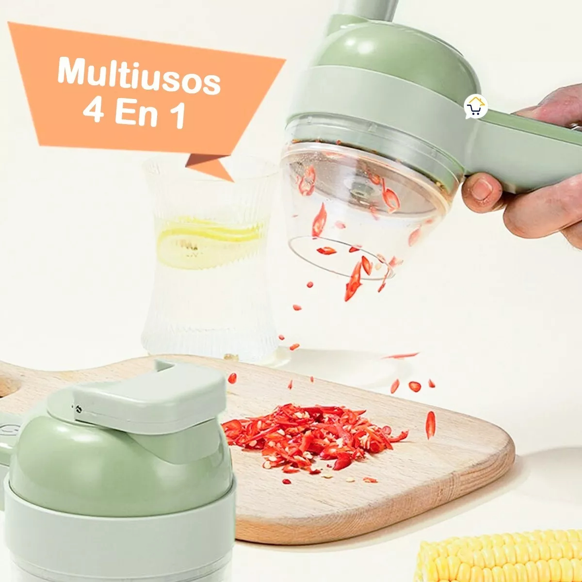 El asistente de cocina ideal 4 en 1 multifuncional con un motor potente y una batería de alta durabilidad, con la que podrás picar de manera fácil y rápida verduras, frutas y carnes.