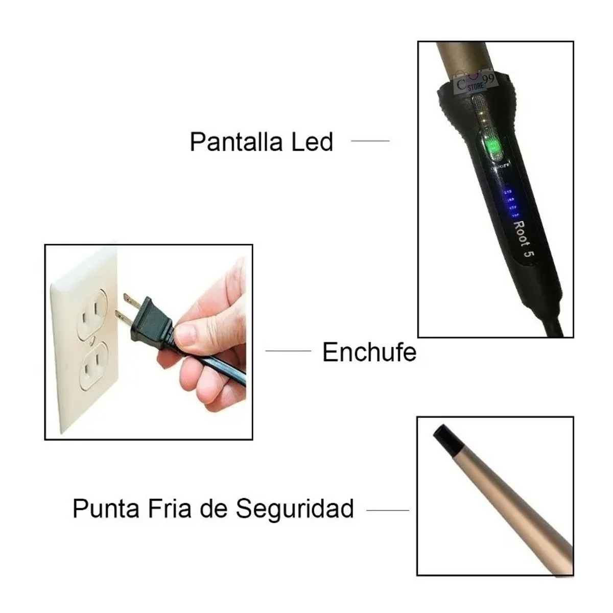 El rizador ROOT 5 tiene un revestimiento cerámico sobre una superficie calentada, lo que proporciona un estilo suave sin dañar la estructura del cabello.