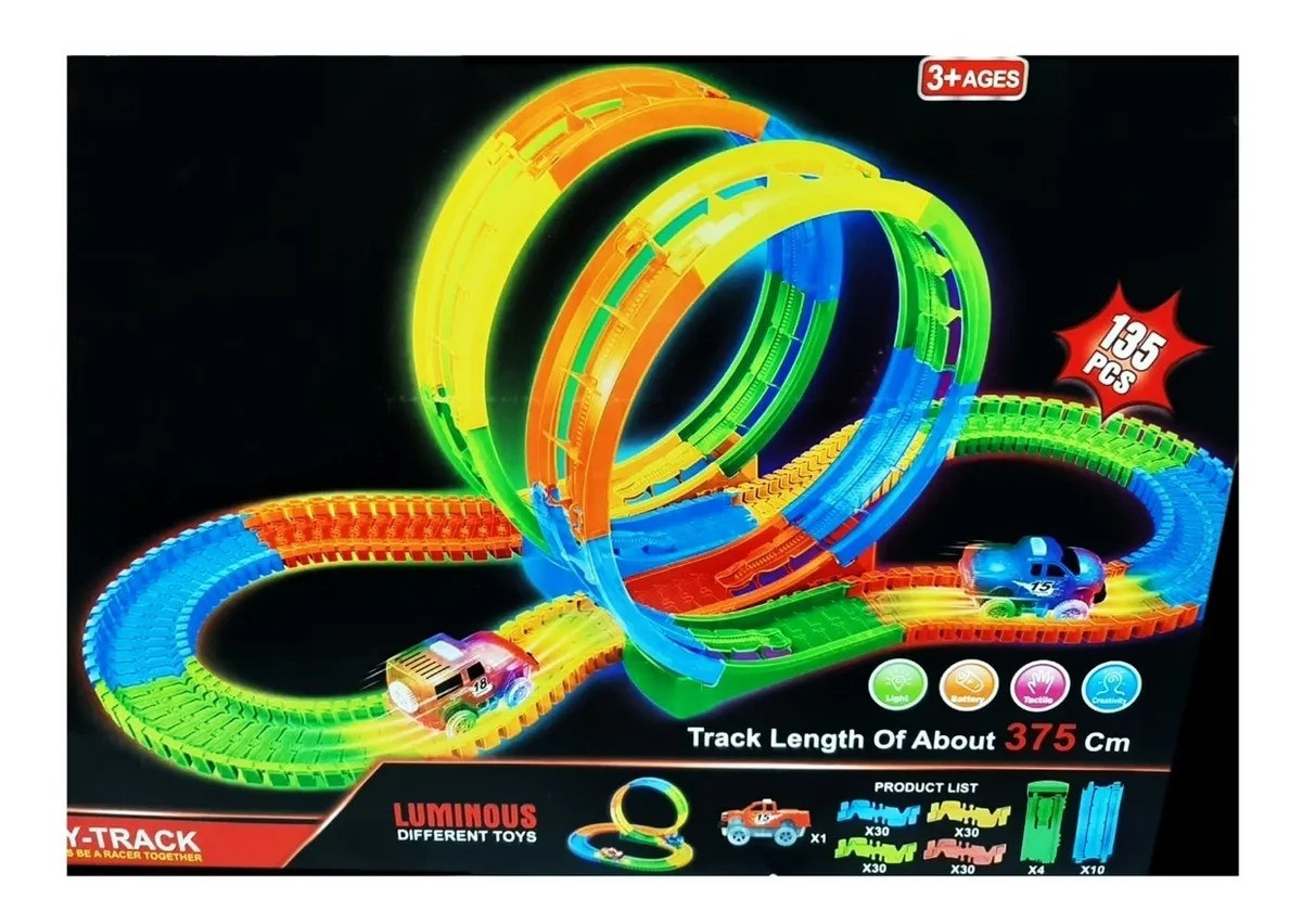 Espectacular pista de 142 piezas alumbra en la noche ideal para tus hijos, se puede doblar y es de muy buena calidad .