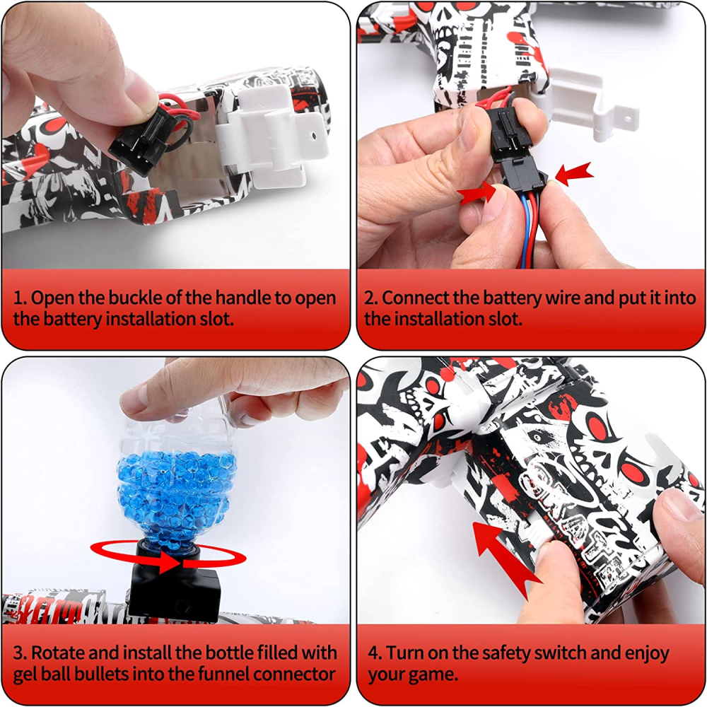 Modo automático: Esta arma de juguete eléctrica de bolas de gel tiene un mecanismo mejorado, la velocidad automática es muy rápida. Te da una experiencia de disparo más realista. Esta arma de juguete de bolas de gel utiliza una bola de hidrogel de 6-7 mm (todas las demás bolas de hidrogel no aplican para esta arma de juguete de bolas de gel). Los lentes de seguridad deben tenerse puestos durante el uso (están incluidos).
