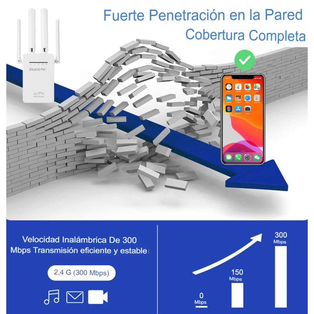 Pixlink – Repetidor Router Inalámbrico, Punto de Acceso, Extensor de Alcance 300Mbps, Amplificador de Señal WiFi, 4 Antenas Externas, WR09