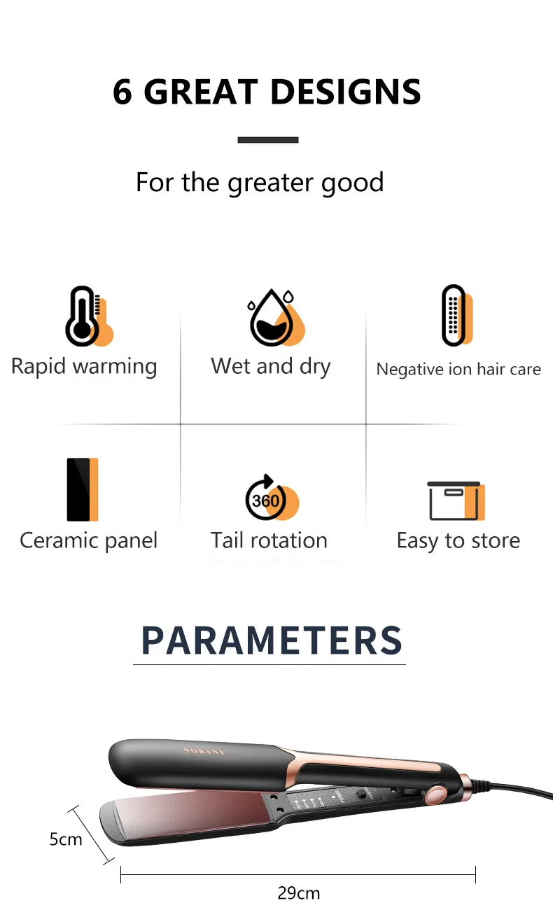 • La plancha plana de cerámica profesional SK-1907 está diseñada con placas de cerámica