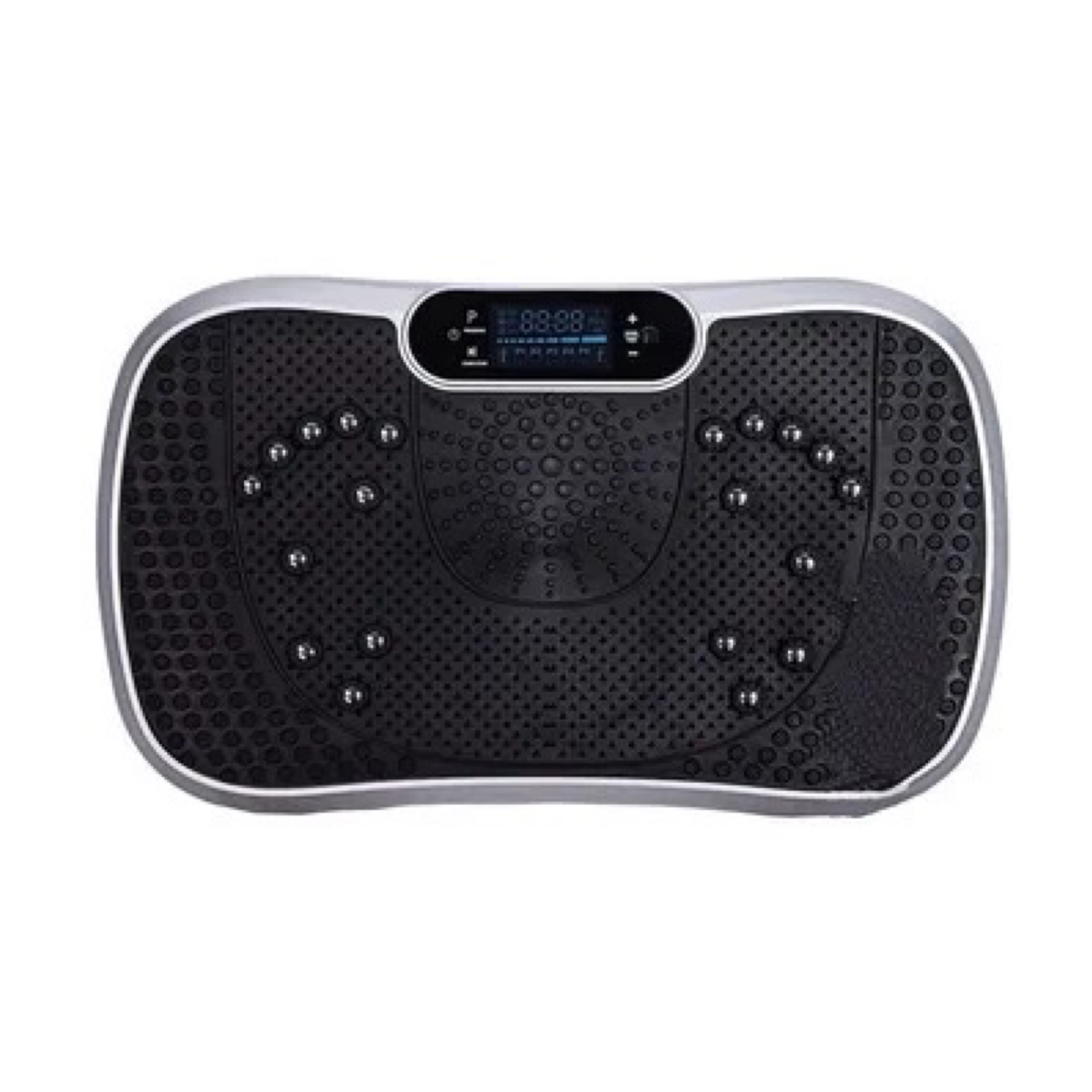 PLATAFORMA VIBRATORIA TV TONIFICANTE, MASAJES, ESTIMULANTE+ BANDAS ELASTICAS DE RESISTENCIA FITNESS PARA MÚLTIPLES EJERCICIOS DE TONIFICACION Componentes: Plataforma vibratoria (pedal antideslizante), Masajeador magnético, Base con soporte antideslizante, Etiqueta de precaución, Pantalla LED, Interruptor eléctrico, Enchufe, Cubierta, Consola de mando.