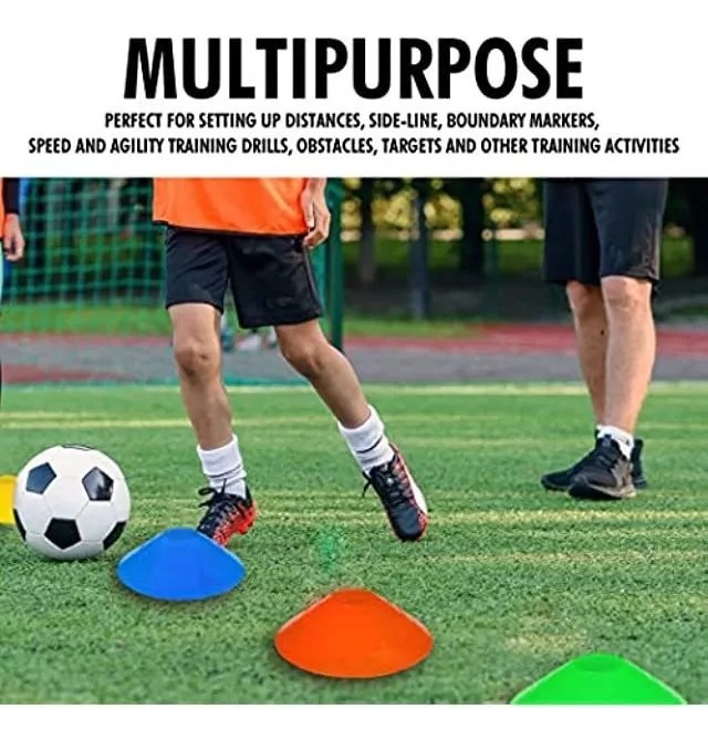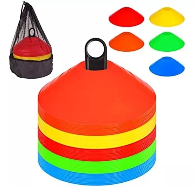 ¡Mejora tus entrenamientos con nuestro juego de 50 conos multiusos tipo platillo! Perfectos para fútbol, baloncesto, atletismo y más. Resisten cualquier clima y terreno. Ideales para marcar límites, diseñar circuitos y optimizar tus prácticas. ¡Potencia tu rendimiento y lleva tu entrenamiento al siguiente nivel con estos conos esenciales!