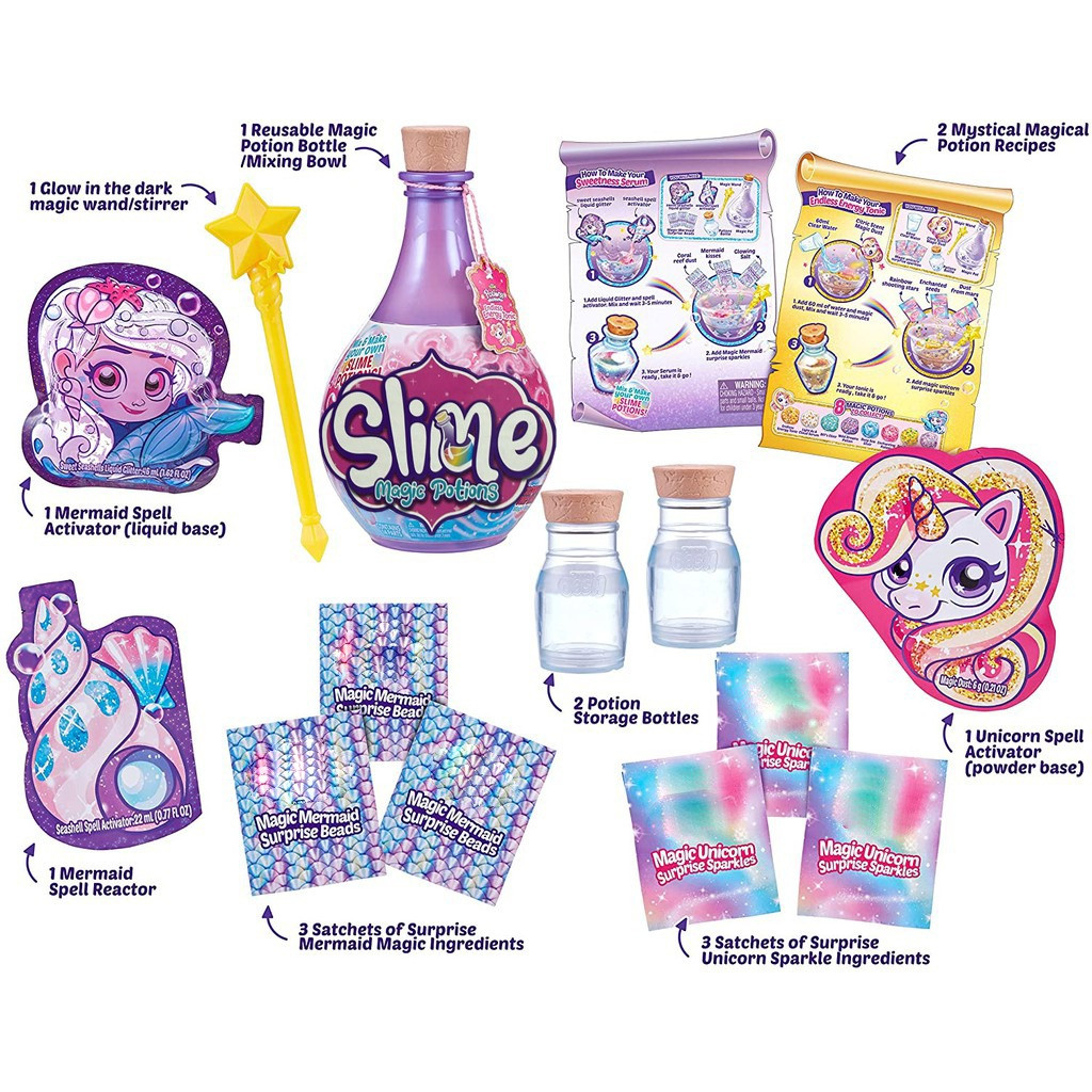 Desde destellos hasta slime, ¡hay mucha magia para encontrar! Las Nuevas Pociones Slime Magic Potion agregan un toque de magia a la fabricación de slime. Hay 4 botellas de poción mágica diferentes, cada una con dos pociones sorpresa para crear en el interior, cada poción de encuadernación de hechizo viene con su propia base de gooey o polvo, tres accesorios diferentes para agregar, botellas de almacenamiento y una receta mágica fácil de seguir. Deja que la magia comience con pociones.