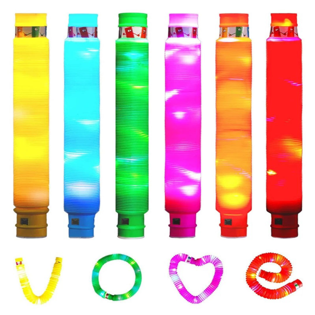 Los tubos luminosos son divertidos y funcionales, son juguetes sensoriales que se despliegan, estiran y conectan, haciendo de estos tubos el juguete ideal para jugar.
