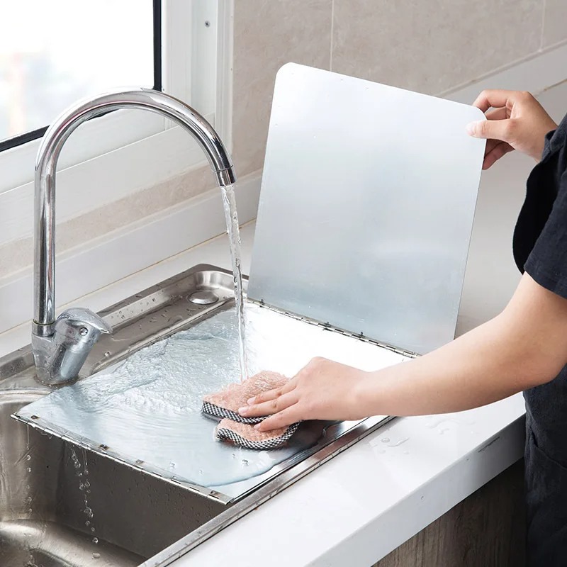 El protector contra salpicaduras de cocina bloquea eficazmente las salpicaduras de aceite en la cocina, y el efecto de aislamiento térmico es bueno, evitando que la pared de la estufa se cubra con aceite, y el plástico circundante, especias, latas, etc. se calientan para derretirse, deformarse, Y también se puede utilizar como tabla a prueba de salpicaduras para lavar alimentos.