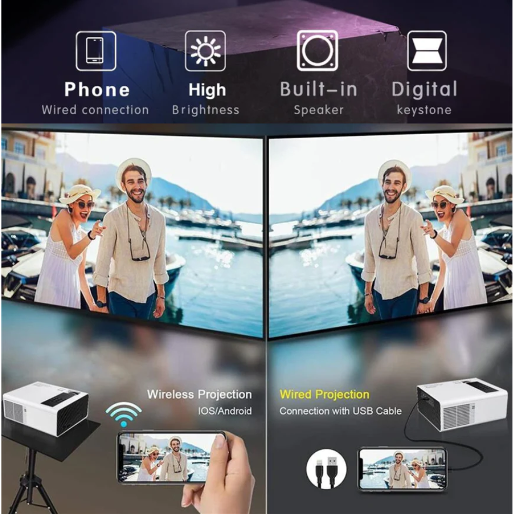 PROYECTOR LED VIDEO BEAM Y6, 1080P, 2000 LÚMENES, WIFI, PANTALLA DE SINCRONIZACIÓN, LCD, CINE EN CASA, PELÍCULA, PARA EL HOGAR Y LA OFICINA