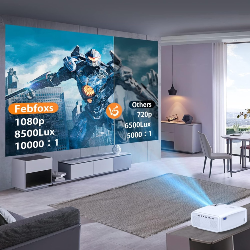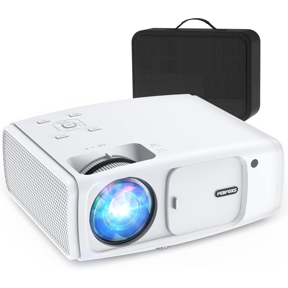 FEBFOXS Proyector con WiFi y Bluetooth, 8500L Nativo 1080P Proyector de video compatible con 4K, proyector portátil para exteriores con bolsa, compatible con iOS/Android/PC/DVD/TV Stick/PS5