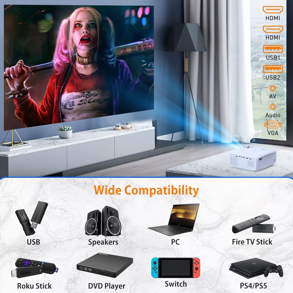 Disfruta de conexiones inalámbricas sin esfuerzo en menos de un minuto con nuestra configuración fácil de usar de este proyector WiFi. Este proyector Bluetooh cuenta con un enlace de dispositivos sin problemas y funcionalidad Bluetooth, lo que hace que cada conexión sea muy fácil.