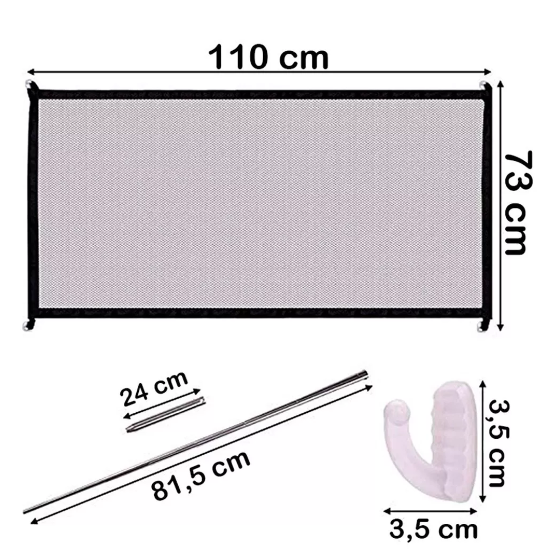 Se adapta a tus necesidades para mantener a las mascotas o niños seguros en un espacio específico. la puerta magic gate está diseñada para usarse como puerta de seguridad para bebés y puerta para mascotas, construye una cerca segura para jugar y descansar. fácil de instalar y plegar. el paquete incluye dos medidas : 1x magic gate mesh actualizado (72 x112cm), 2x postes estirables, 4x ganchos adhesivos fuertes ó de (18ocm x72cm). Malla escasa a una red de malla apretada, tejida por una resistente cuerda de plástico abs, el diámetro de la malla es de solo mm, gran tenacidad y transparente, por lo que no se enganchará ni se rasgará por las mascotas garra y dientes, y siempre puedes mirar a tu bebé y a tus mascotas. la cuerda de enganche ahora se actualiza con una ligera elasticidad, conveniente para enganchar y desmontar.