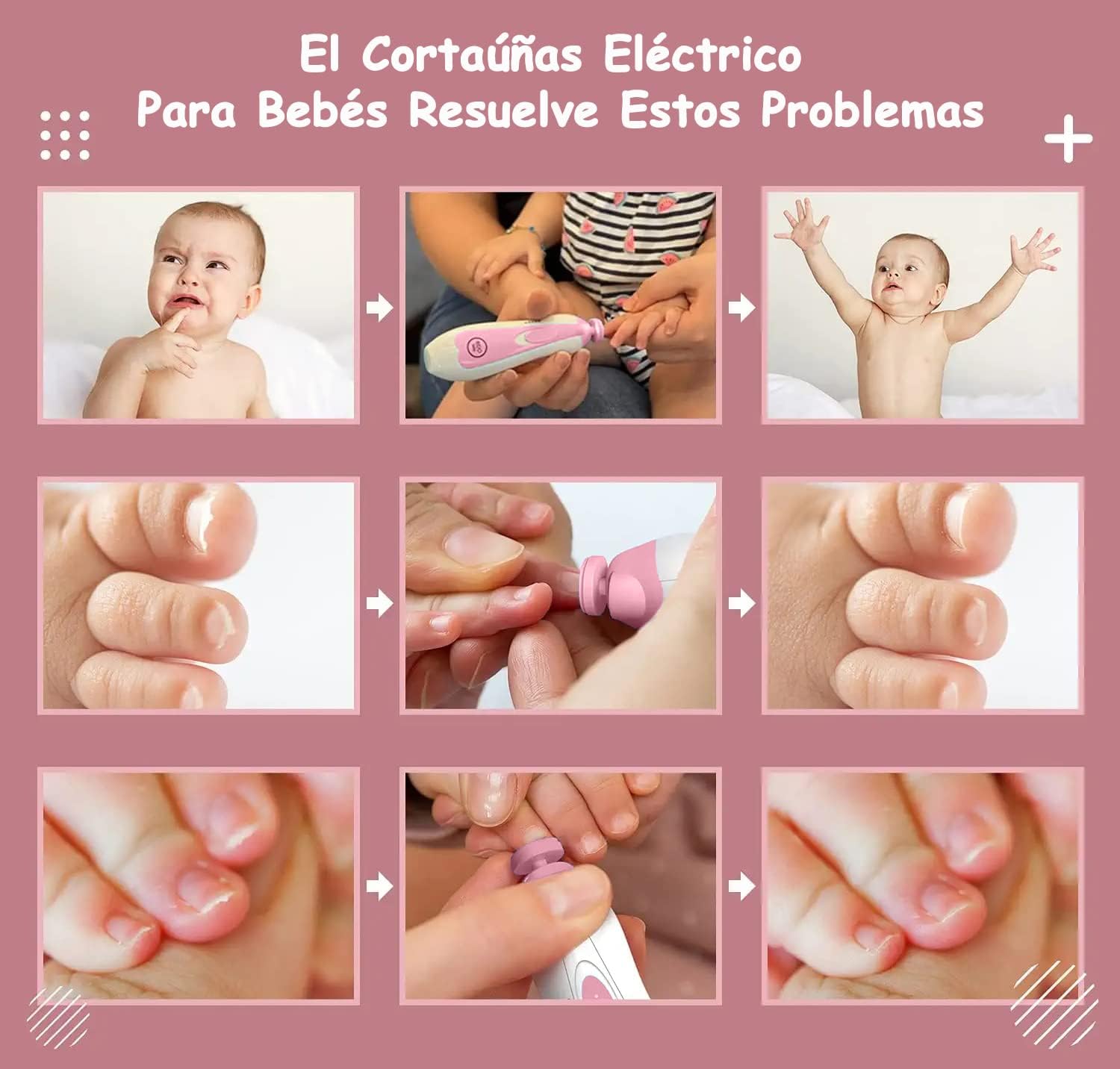 - Superficie de Pulido: Almohadillas suaves de esmeril, diseñadas para no dañar la delicada piel del bebé ✨.