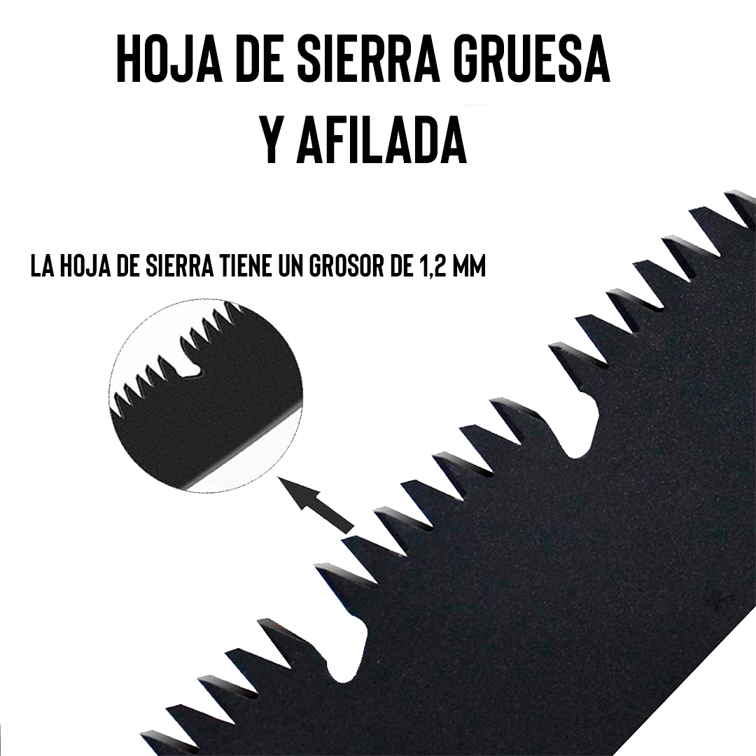 Hoja afilada y resistente: La hoja del serrucho podador está afilada para garantizar un corte limpio y suave. Además, está fabricada con materiales resistentes que le brindan durabilidad y un rendimiento confiable.