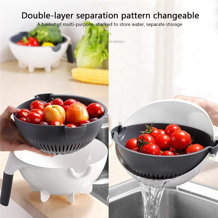 – Corte y limpieza sencillos y rápidos, hebilla de rotación, ángulo de rotación automático, la cesta de asfalto siempre es estable, fácil de lavar verduras y drenar agua.