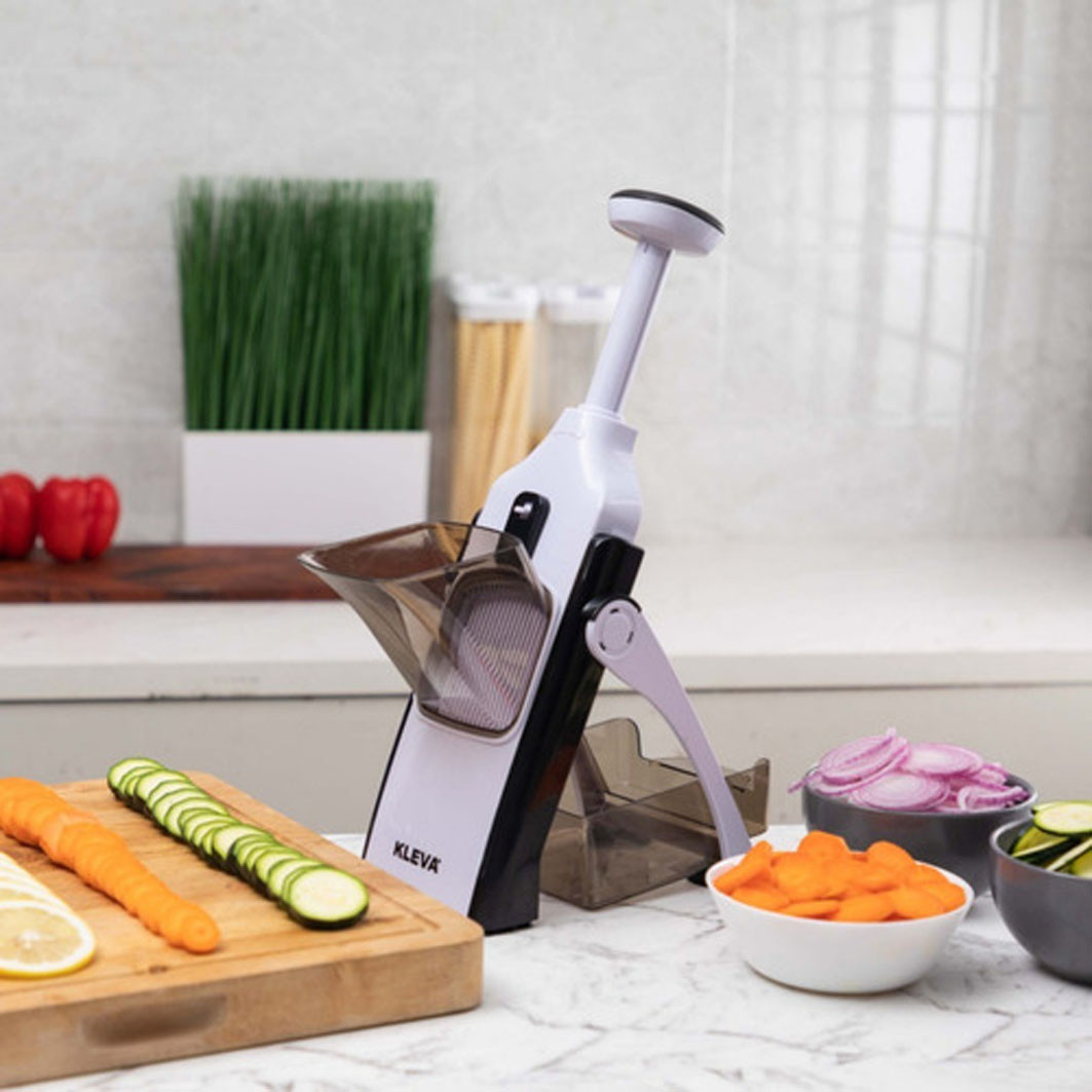 La cortadora de resorte Brava reduce su tiempo, esfuerzo y habilidad para cortar frutas y verduras. Es más rápido, fácil y seguro preparar todos los ingredientes que necesita para comidas saludables y deliciosas. Con docenas de configuraciones y un diseño fácil de usar, fácil de limpiar y fácil de almacenar. La bandeja de recogida está incluida en el juego.