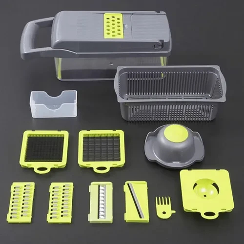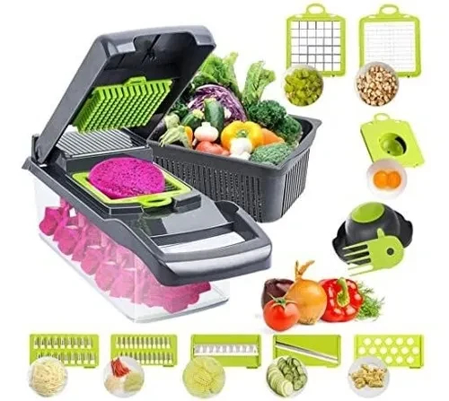 Herramientas de cocina todo en 1: 12 accesorios, multifuncionales, 10 cuchillas intercambiables y pelador extra, a través de las cuales puedes obtener trozos grandes o pequeños, gruesos o finos, trozos o juliana. Las cuchillas permiten flexibilidad para cortar, cortar, cortar en dados, cortar frutas y verduras fácilmente en formas y tamaños durante un tiempo mínimo. Fácil desmontaje e instalación.