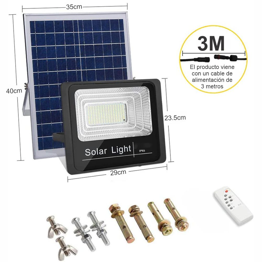 LUZ SOLAR LED DE 300W, PANEL SOLAR CON MANDO A DISTANCIA, 176 LEDS 5100 LM, ALTA LUMINOSIDAD, IP67, RESISTENTE AL AGUA, RECARGABLE, PARA PATIO, JARDÍN, CAMINO, ARENA, PISTA