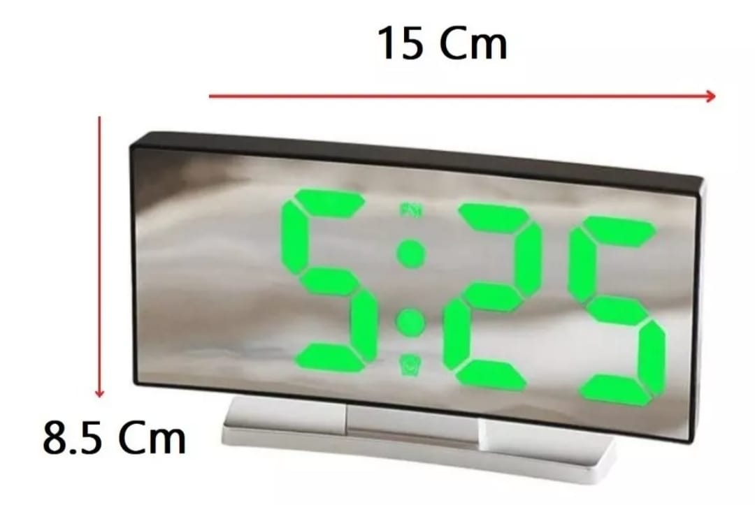 que es claramente visible desde cualquier lugar de la habitación, y el color de los números es verde, lo que te permite ver la hora más claramente en cualquier momento del dia o en la oscuridad de la noche