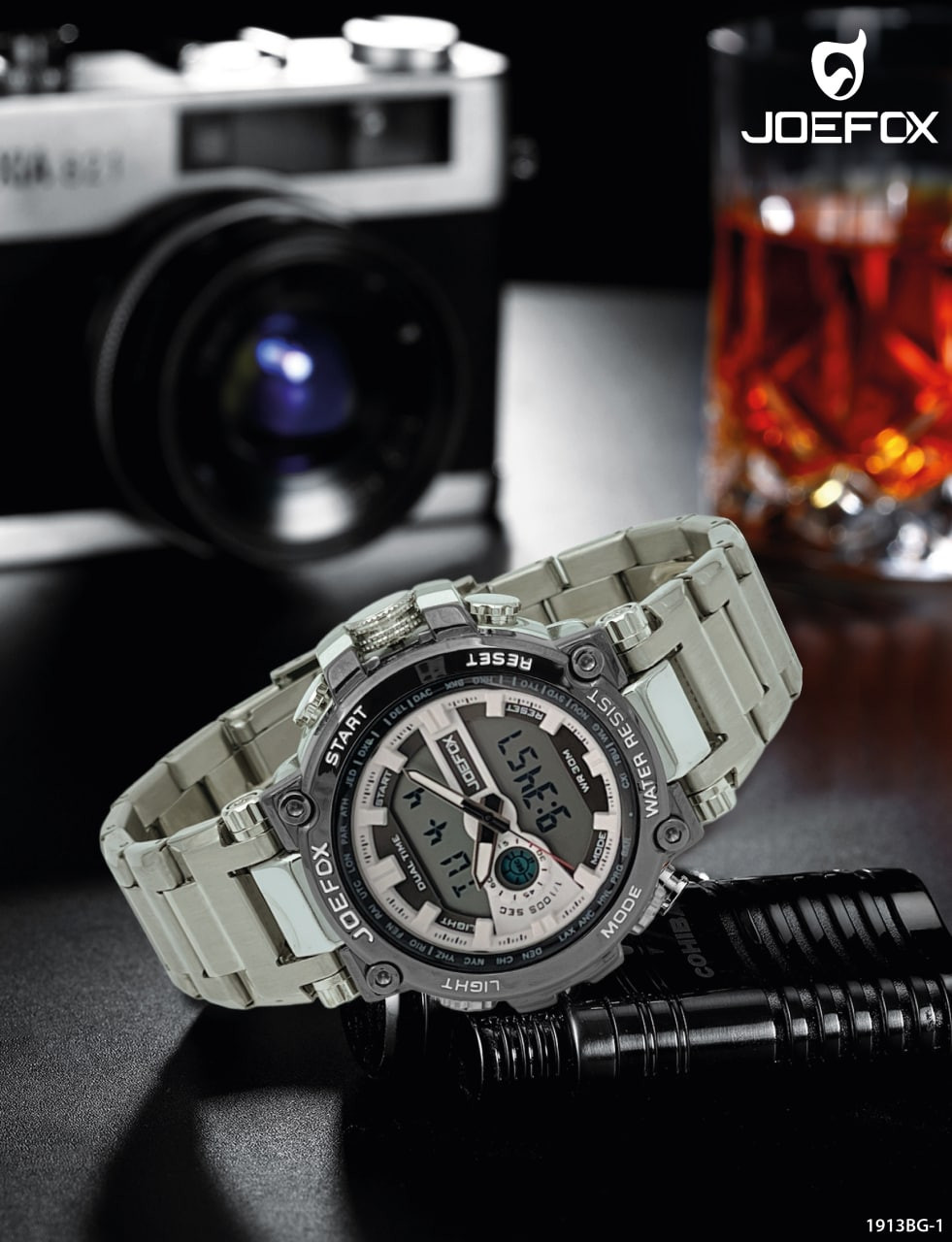 Compare– Hora análoga y digital, cronómetro, calendario, luz y alarma.