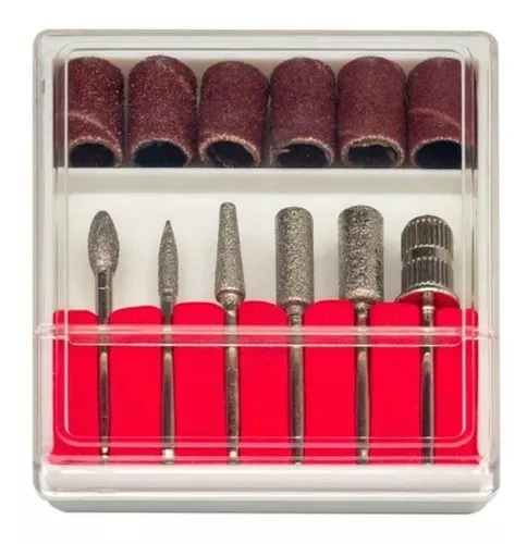 6 brocas para repuesto de máquina pulidor de uñas de 3/32 pulgadas, se adaptan a la mayoría de las limas de uñas eléctricas profesionales estándar. Juego de 6 brocas de diamante de acero inoxidable (incluyendo una broca de mandril) y 6 bandas de lijado en diferentes granos.