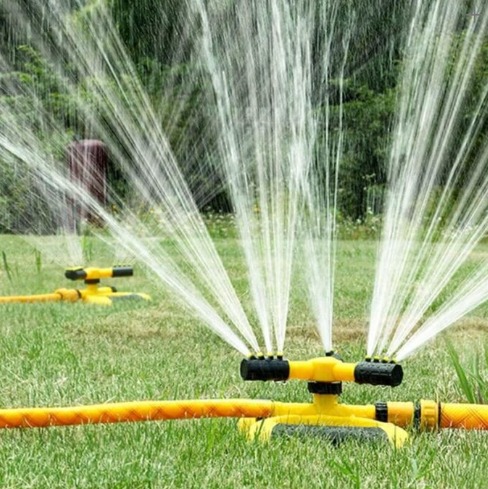 Gran área de pulverización: este aspersor de agua para césped tiene tres cabezales de rociadores de alta calidad que pueden rociar 360 grados sin puntos ciegos en todas las direcciones.