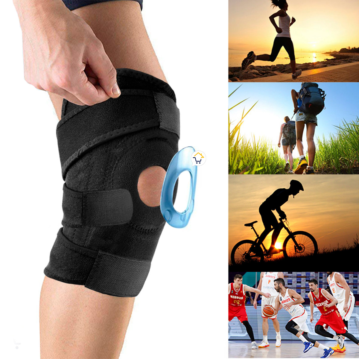 - Este soporte para rodilla es ideal para montar, escalar montañas, fútbol, baloncesto, bádminton, tenis, atletismo y demás actividades deportivas.