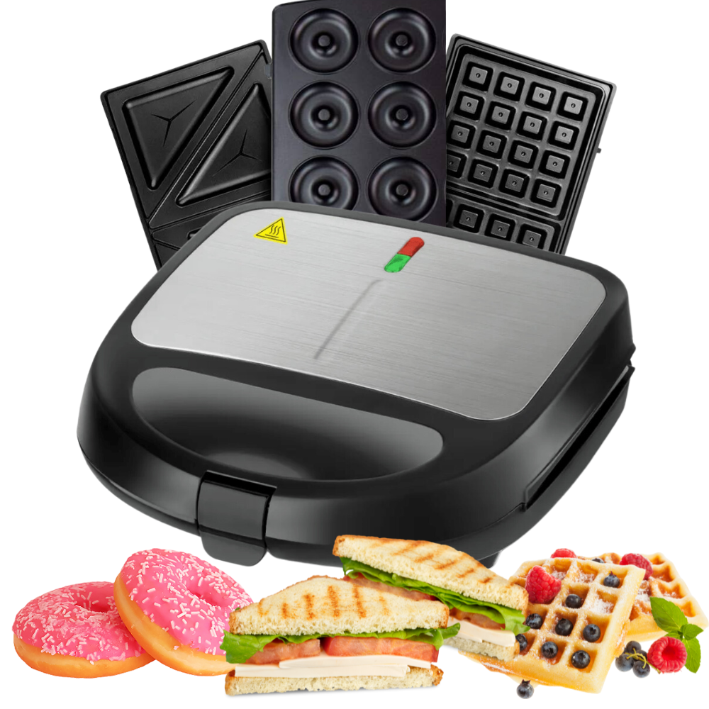Experimenta la versatilidad culinaria con nuestra Máquina 3 en 1, que combina las funciones de sandwichera, waflera y donutera en un solo dispositivo. Esta ingeniosa máquina no solo te permite diversificar tu menú diario, sino que también se adapta a tus necesidades culinarias de manera eficiente y conveniente.