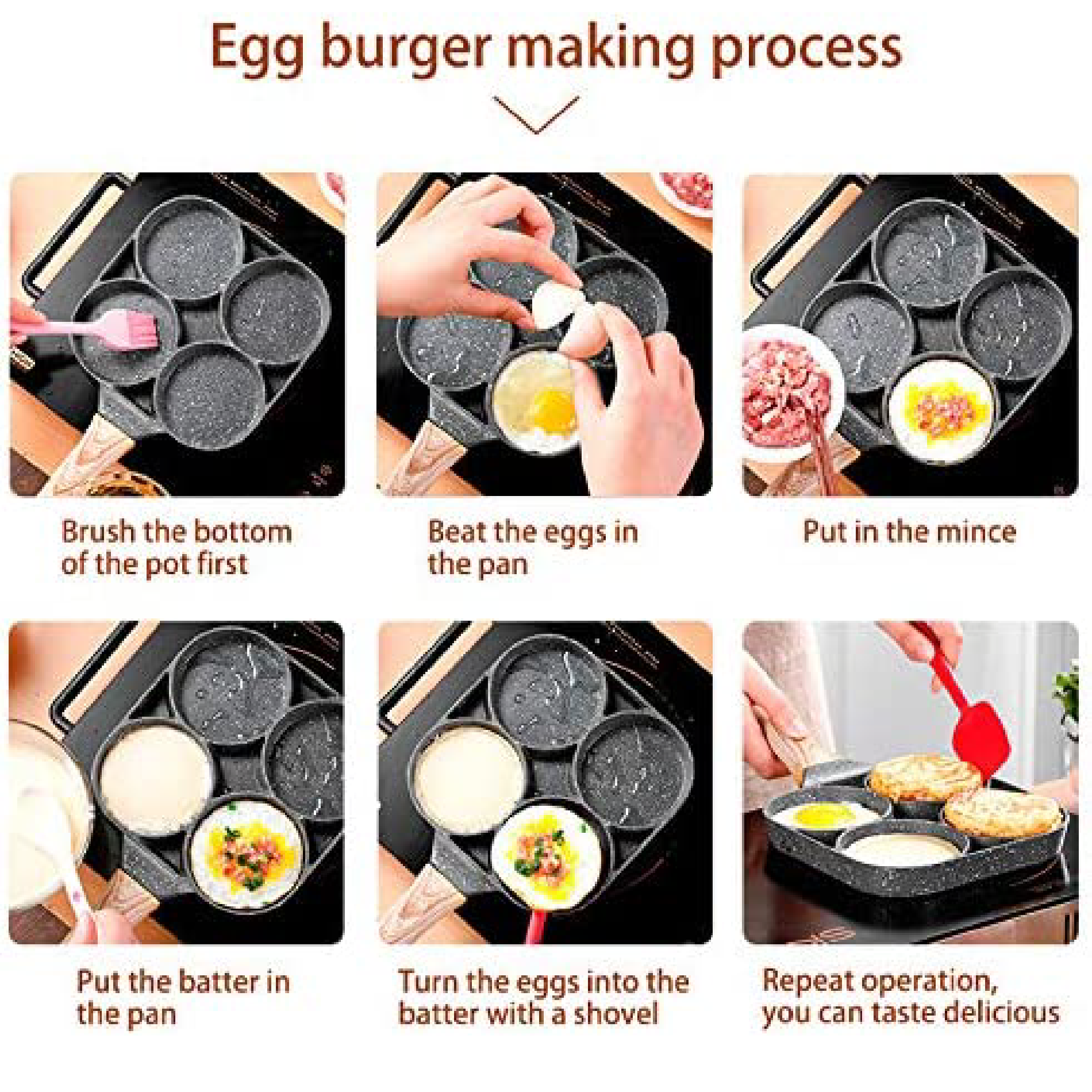 Usos múltiples: Este sartén es muy practico para preparar Huevos, Tortillas, Arepas, Pancakes, Hamburguesas entre otros, cuenta con 4 compartimentos para que cocinar sea rápido y fácil.