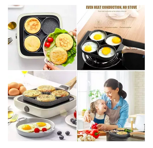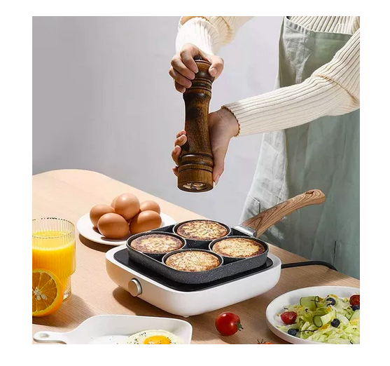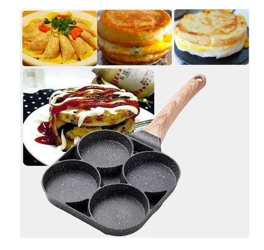 Usos múltiples: Este sartén es muy practico para preparar Huevos, Tortillas, Arepas, Pancakes, Hamburguesas entre otros, cuenta con 4 compartimentos para que cocinar sea rápido y fácil.
