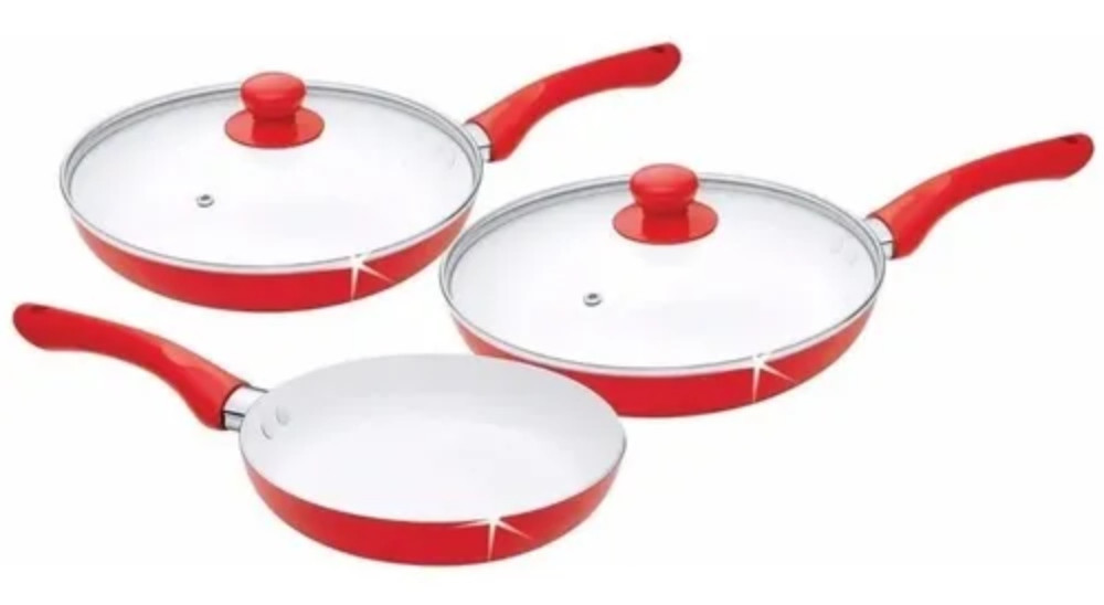 Este set de sartenes por 5 Piezas ideal para preparar exquisitas recetas que sorprendan a tu familia. Este juegos de sartenes esta elaborado en cerámica, un revolucionario material totalmente antiadherente que permite una cocción con poco o ningún tipo de aceite, además evita que los alimentos se peguen en la superficie.