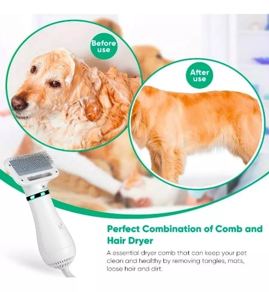 Secado durante el cuidado: nuestro secador de pelo para mascotas se puede utilizar para secar a tu mascota peluda después de su ducha, o un secado rápido después de un paseo lluvioso. Durante el secado, también puedes cepillar la piel y la capa inferior de tu bebé peludo, más cómodo y ahorra tiempo.
