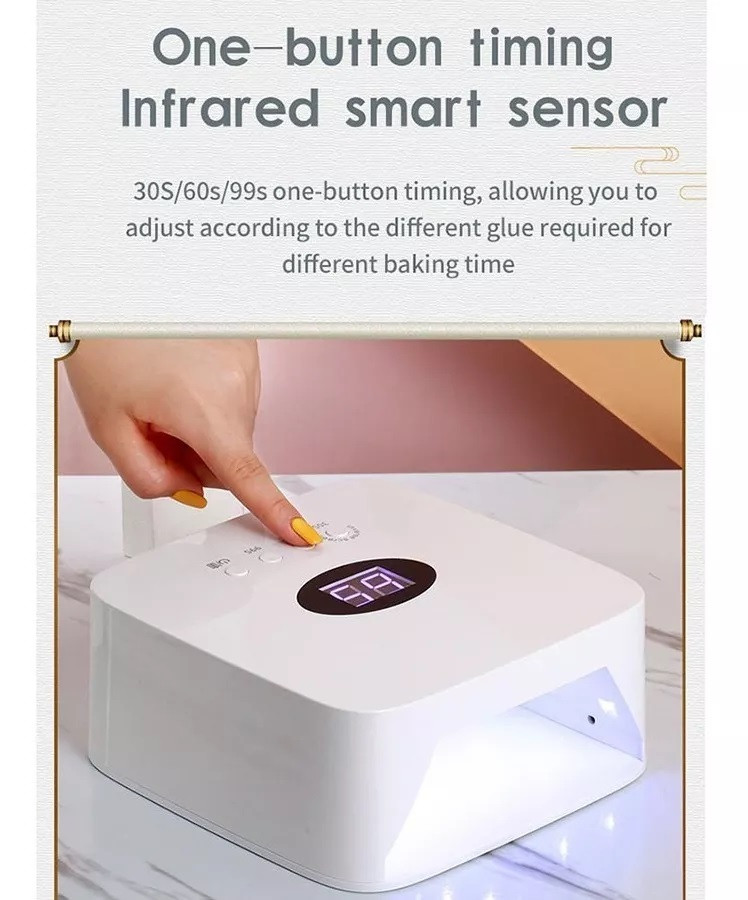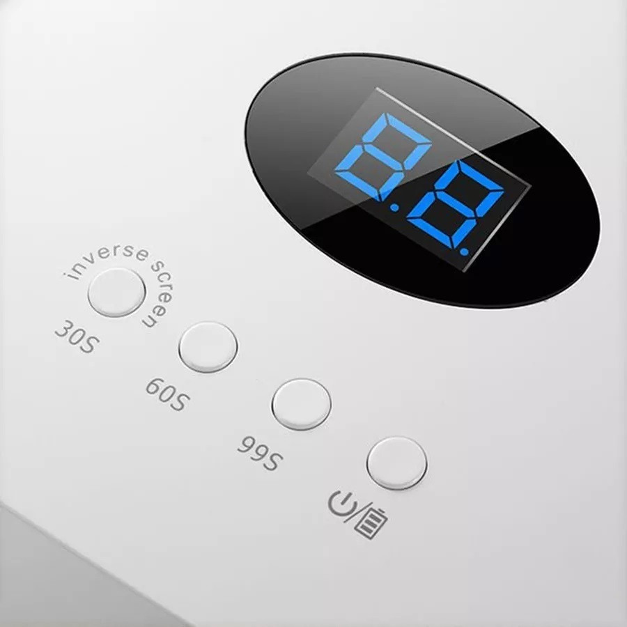 – Función de recordatorio de batería baja: con el fin de mejorar tu eficiencia de trabajo, cuando la batería de la lámpara de uñas es solo un 10% baja, la pantalla se contará automáticamente y parpadeará, cambiando de una luz azul a una luz oscura, te recuerda que debes cargar a tiempo, sin retrasar tu tiempo de trabajo.