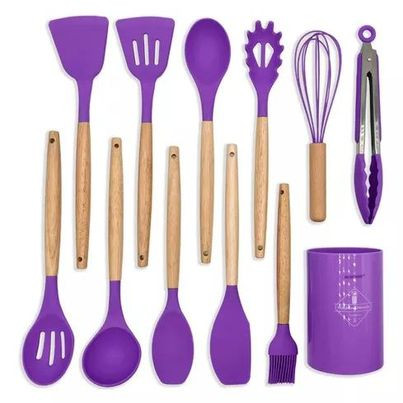 SET DE 12: No más improvisaciones. Este conjunto le brinda la herramienta adecuada para abordar esa tarea. Incluye una espátula, un volteador ranurado, un volteador de alimentos, un servidor de pasta, un cucharón para sopa, una cuchara ranurada, una espátula redonda, unas pinzas, una brocha para rociar, una cuchara sólida y un batidor; útiles elementos esenciales de cocina para el hogar y el apartamento que hacen que cocinar sea un placer.