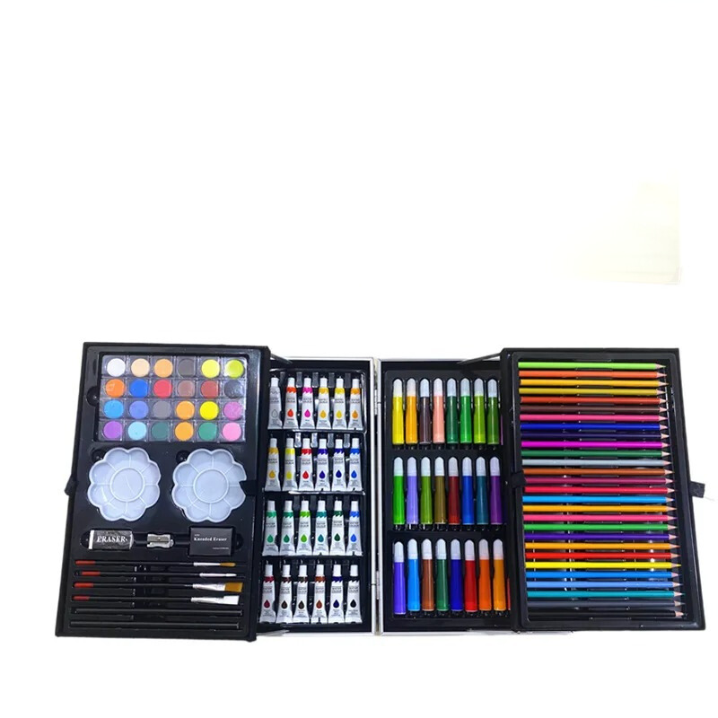 Este set de arte Unicornios de 145 piezas es una caja de arte plegable de metal profesional de alta calidad que contiene todo lo necesario para pintar y dibujar, simplemente abres la funda de arte y levanta las bandejas para revelar las dos bandejas más de suministros de arte, los cuales son de alta calidad con pintura de grado artístico con consistencia perfecta para mezclar, dibujar capas y crear textura. Este set de 145 piezas incluye pinturas acrílicas, pinturas de acuarela, paletas, pinceles, lápices de dibujo, lápices de color, borrador, sacapuntas, crayolas, marcadores.