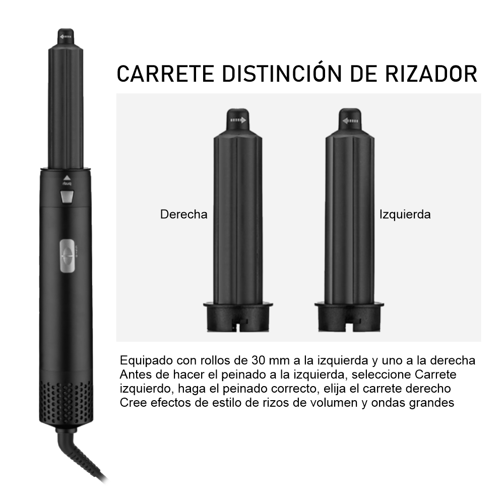 RIZADOR SENTIDO ANTI-HORARIO: este rizador dejará tu cabello con ondas externas y mas abiertas, también, estas ondas duraran varias horas.