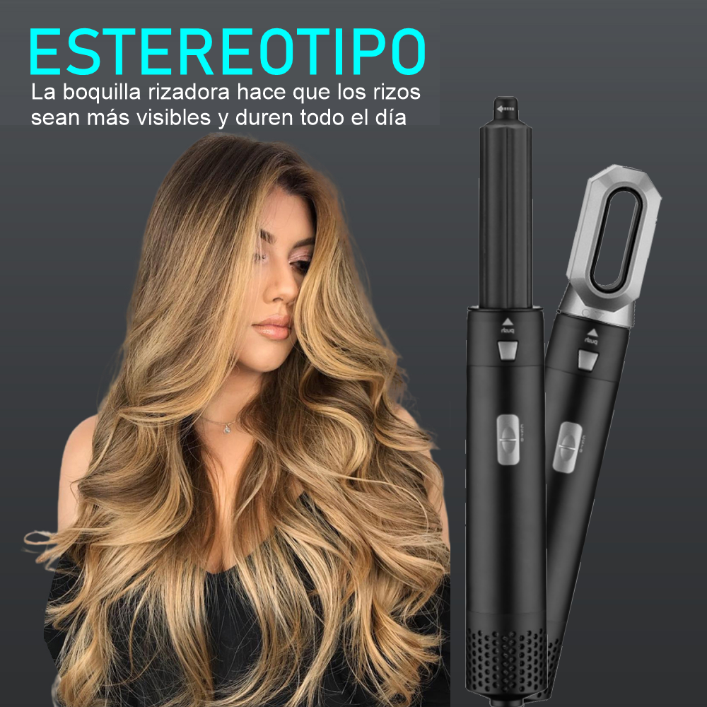 Lo que obtienes con tu compra: 1 tubo principal de aire caliente. 1 cepillo para secador de pelo. 1 cabezal de cepillo para peinar. 1 cabezal de cepillo rizado. 1 cepillo de pelo lacio. 1 manual de usuario (idioma español no garantizado)