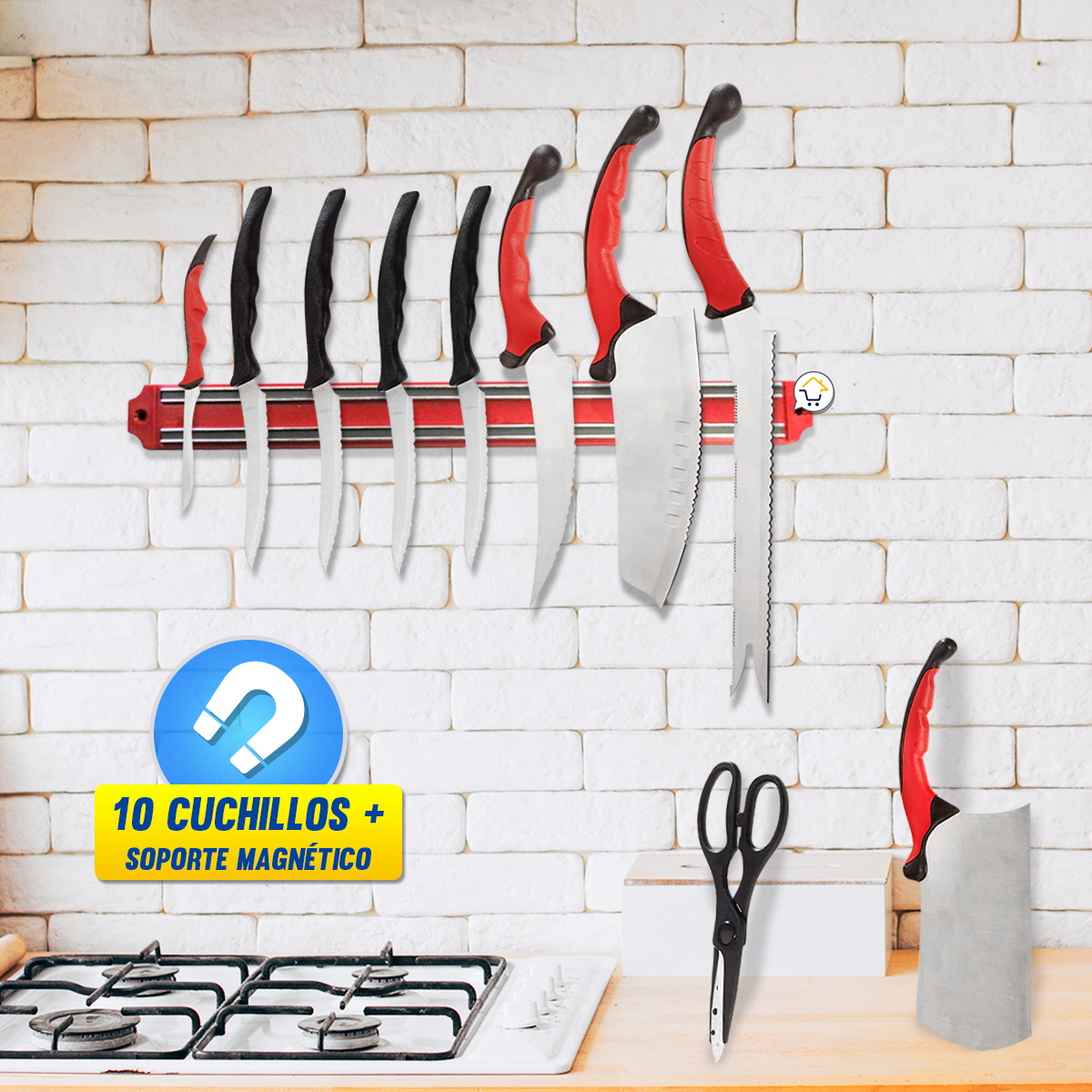 - El soporte magnético mantiene tus cuchillos ordenados y alejados de los niños, para evitar accidentes.