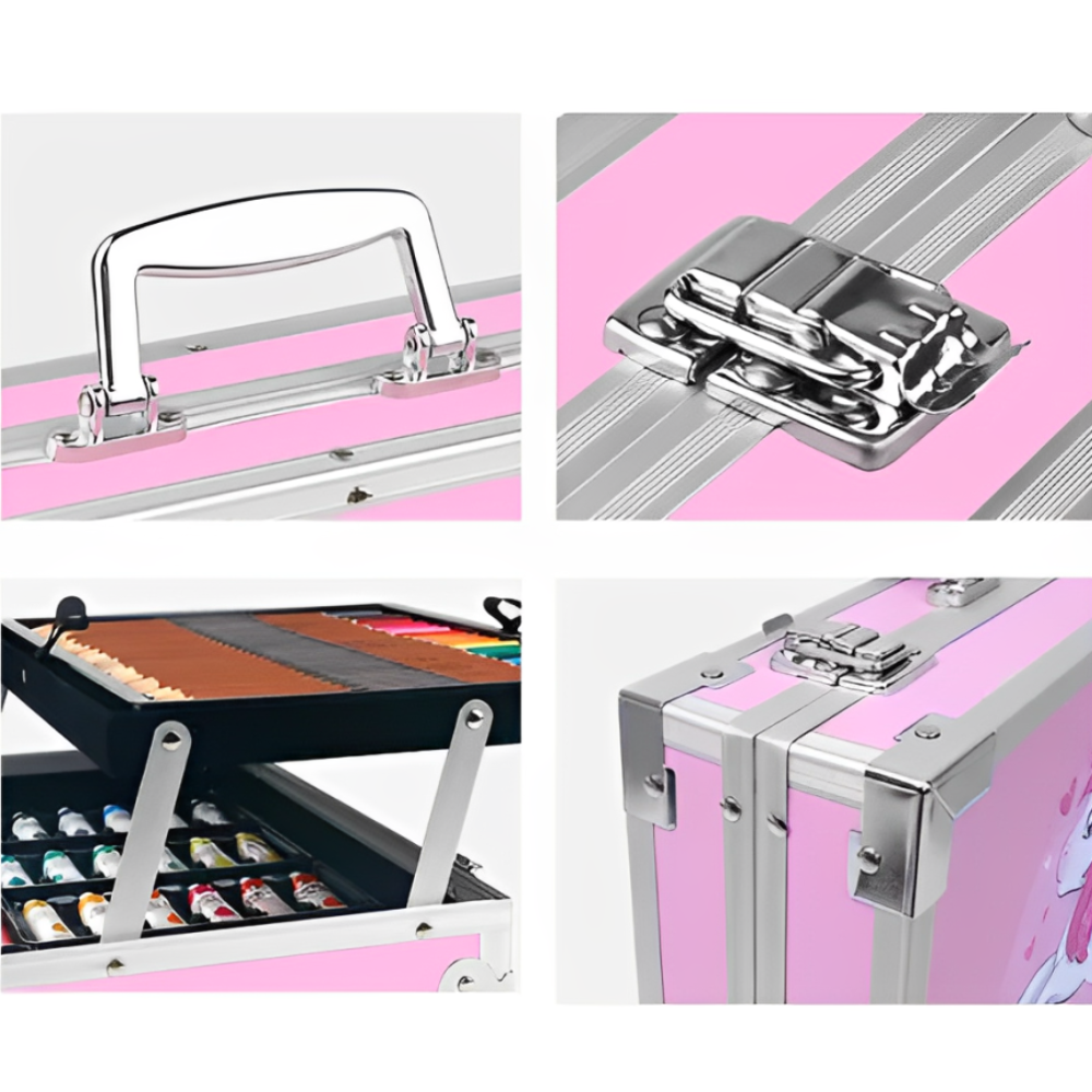 KIT DE DIBUJO x 145 PIEZAS EN MALETIN METALICO Y PLEGABLE