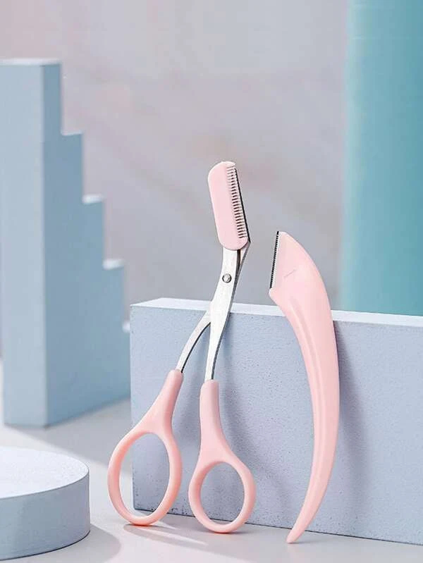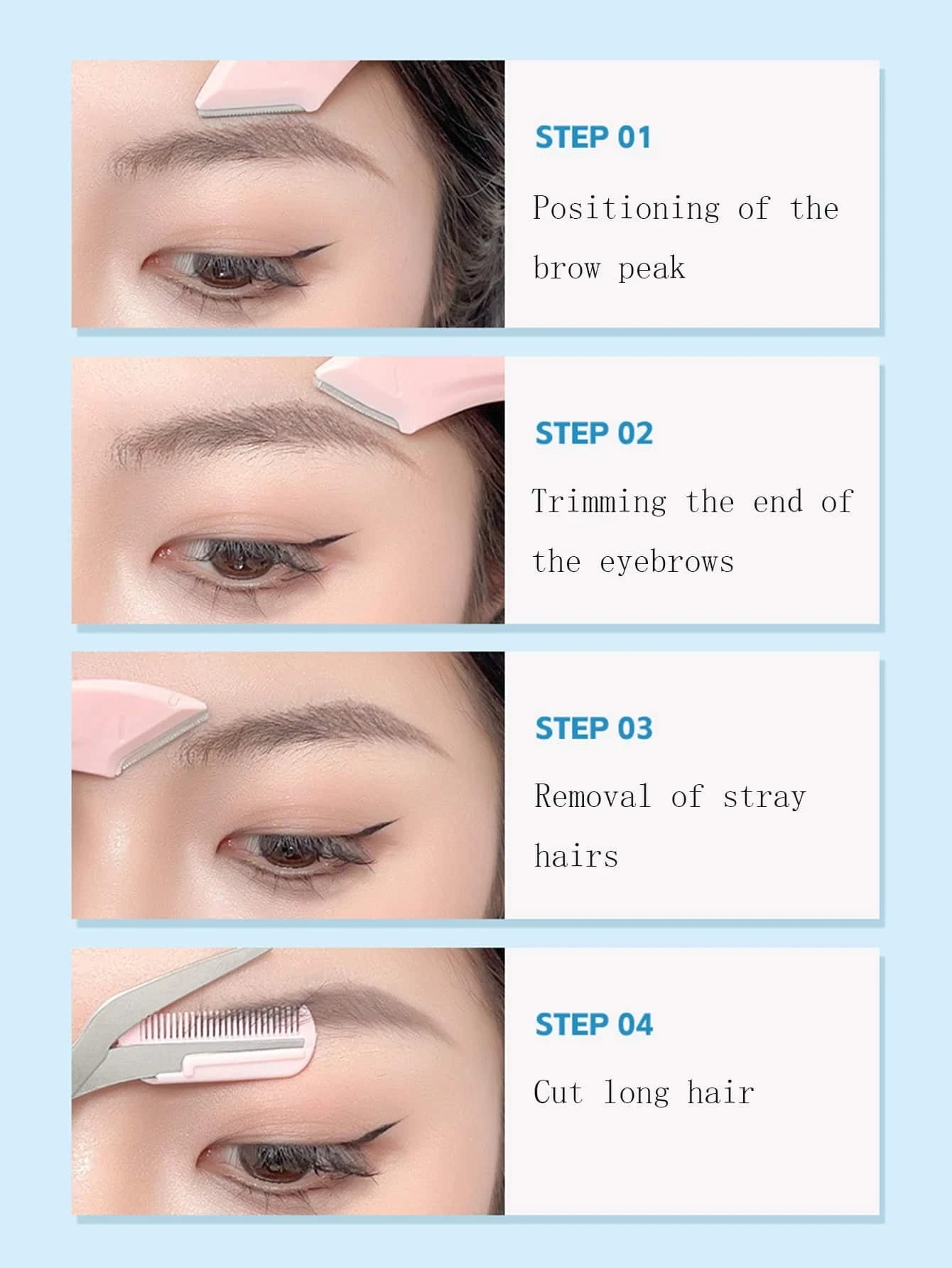 Tijeras de corte en acero inoxidable para cejas con peine + perfilador