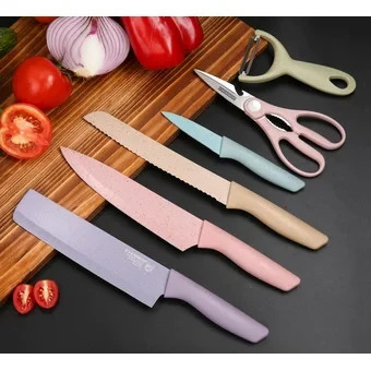 Se despacha un set de 6 piezas: 1 cuchillo de Chef, 1 cuchillo para pan, 1 cuchilla pequeña, 1 cuchillo de pelar, 1 tijera y 1 pelador de cerámica.