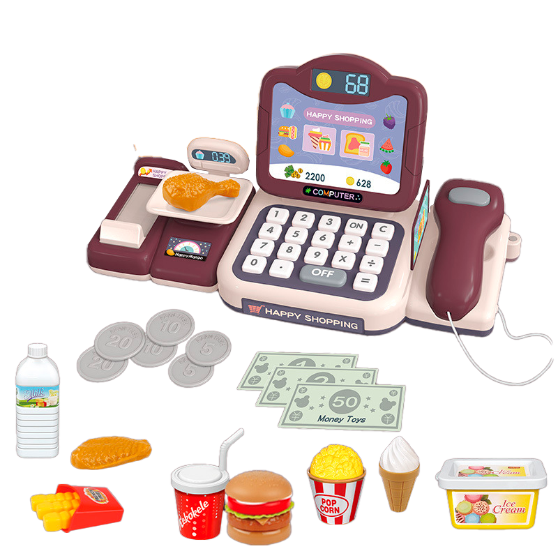Simulación de niños caja registradora de supermercado, conjunto de juguetes rompecabezas, caja registradora multifuncional juguetes para jugar a las casitas.