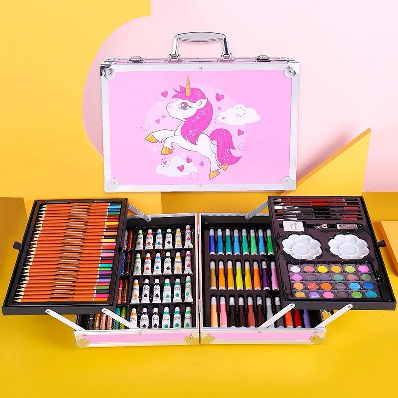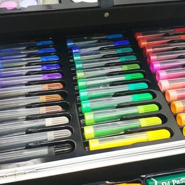 Ayuda a desarrollar la creatividad, imaginación y habilidades de tu hijo con este set de arte. Su diseño en forma de maletín lo hace ideal para llevarlo a todos lados. El set incluye 145 artículos, desde pinturas al óleo y lápices hasta pinceles donde cada objeto tiene su propio lugar. Además, está fabricado con materiales resistentes y ligeros, con asa para el transporte y cierres de seguridad.